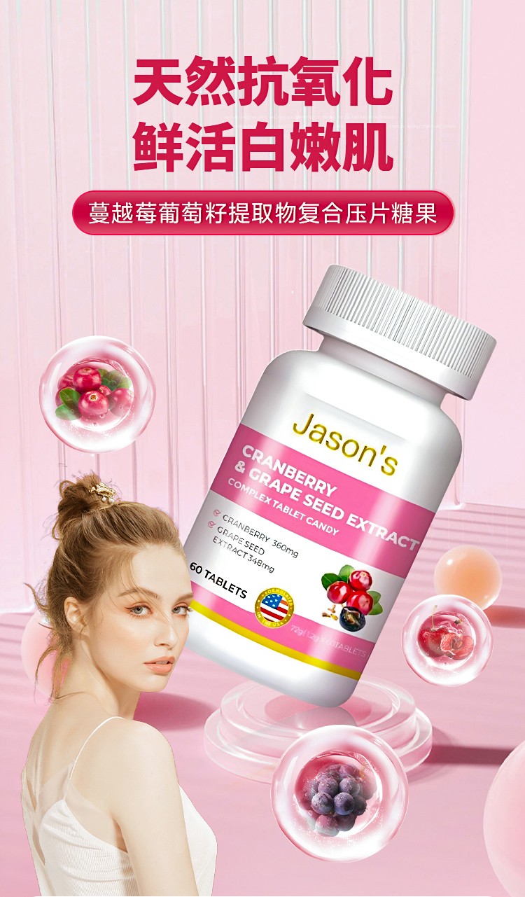 Jason's佳先身蔓越莓葡萄籽提取物复合压片糖果
